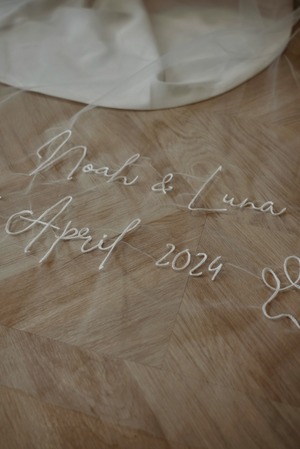 ショートとミドルサイズのベールは、刺繍が見えやすいよう短めの幅でお作りしております。